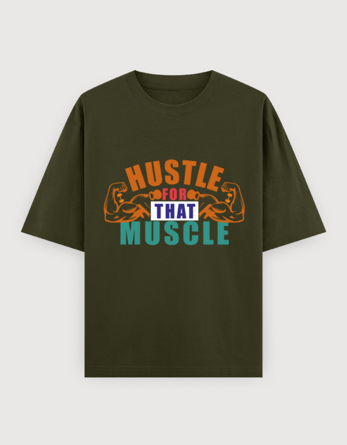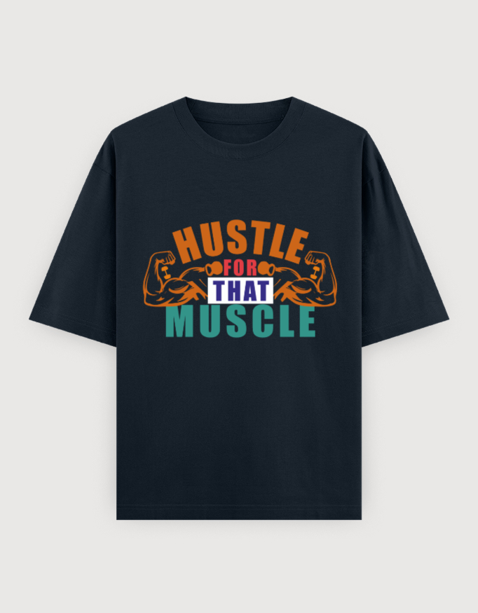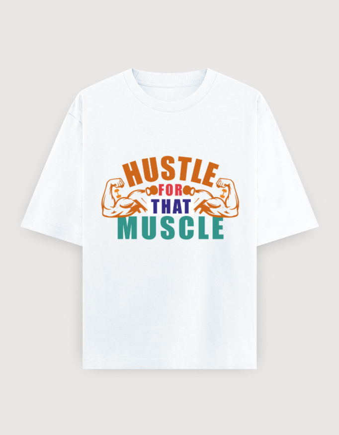 The striking “Hustle for Muscle” print captures the grind and passion of gym goers who push beyond limits to build strength and endurance.